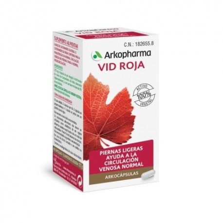 Arkocápsulas Vid Roja es un complemento alimenticio especialmente diseñado para las personas que desean recuperar la ligereza en las piernas ayudando a la circulación venosa normal. Si sientes las piernas cansadas y pesadas tras largas horas sentado o de pie trabajando, Arkocápsulas Vid Roja se convertirá en tu mejor aliado. Gracias a su experiencia, Arkopharma restituye el 100 % de los principios activos de la vid roja, que actúan de forma sinérgica, respetando al máximo el organismo. Arkocápsulas Vid Roja de Arkopharma se presenta en formato de 84 cápsulas.